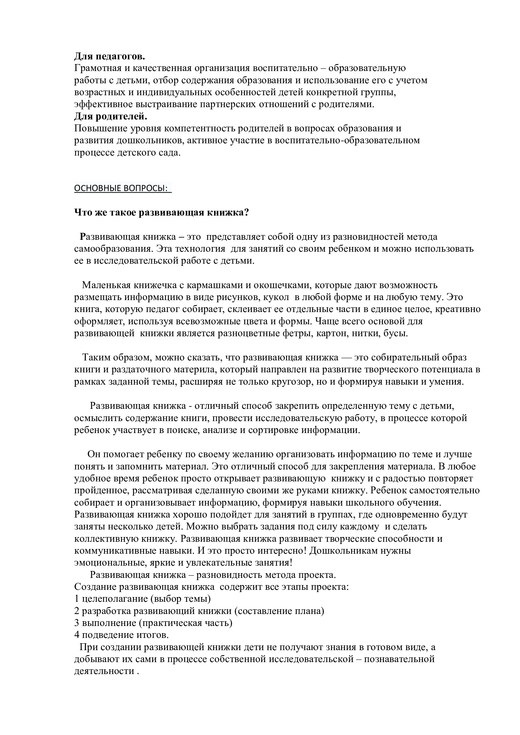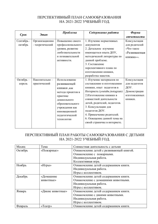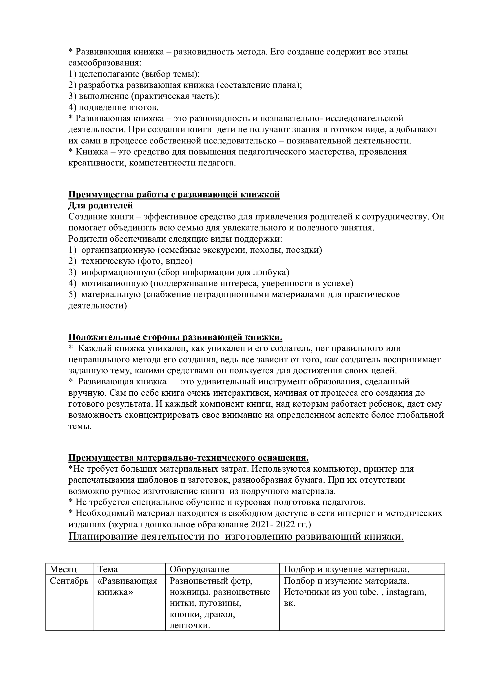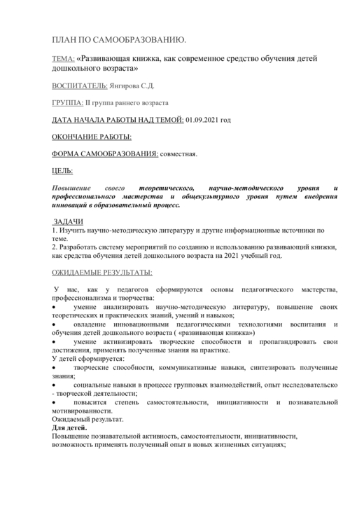 План по самообразованию на тему; "Развивающая книжка, как современное средство обучения детей дошкольного возраста".